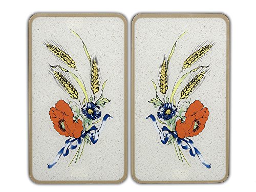 The cover plates Cornflowers bring the summer to your kitchen. The set of 2 glass cover plates with its decorative photo motif also gives the cooker additional functionality. The plates reliably protect it, whether glass ceramic, electric or gas cooker. The eight anti-slip special feet included always ensure the necessary clearance. Due to their heat-resisting properties, the cover plates are suitable for setting down hot saucepans and frying pans. They can also serve as an additional extension to the worktop for the preparation of food. Its scratch-resistant, non-porous surface complies with the highest hygienic requirements, as it prevents the penetration of bacteria and odours. These extremely robust and almost unbreakable (impact-resistant) plates are also TUV/GS tested and have European patent protection. Read more details..